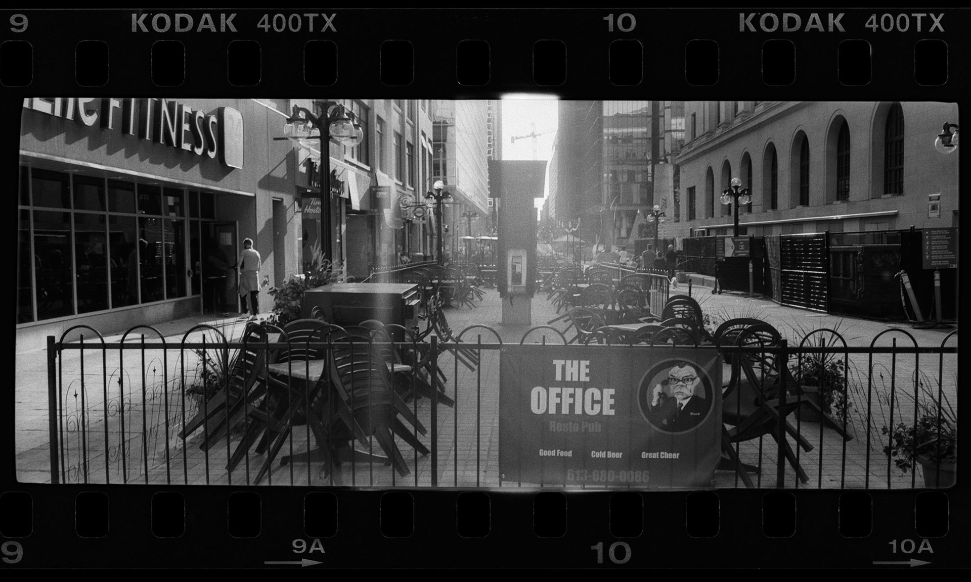 Wellington Street, across from West Memorial Building (under renovation). April 2021.
